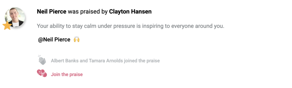 Peer recognition is part of everyday use, not a separate program. Public praise helps reinforce positive behavior and strengthens company culture without feeling forced or artificial.
