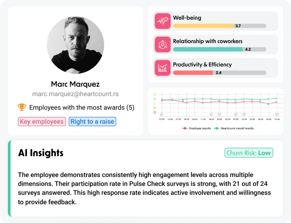 We’ve relied on HeartCount so that we can always be aligned on the team’s well-being and demonstrate the company’s closeness to every single employee, especially those who are physically far away from the headquarters, every week. For us, HeartCount is indispensable for better understanding employees’ needs and helping them be happier with their work every day!